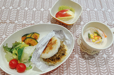 秋の行楽にもぴったり! ライスバーガープレート(令和6年11月号)